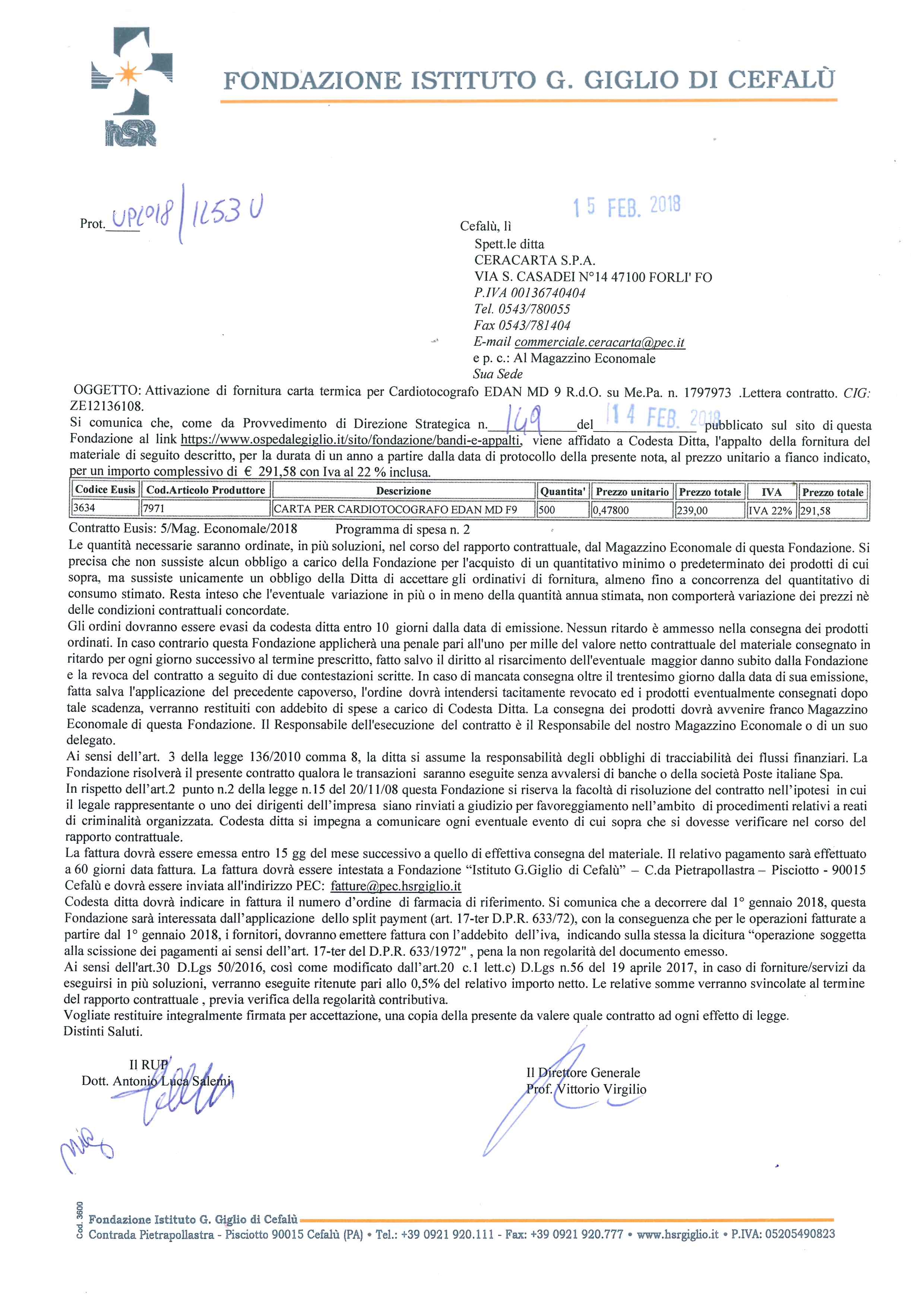 Procedura sul Mepa per la fornitura annuale di carta termica per cardiotocografo Edan MD F9 per l'U.O. di Ginecologia e Ostetricia della Fondazione